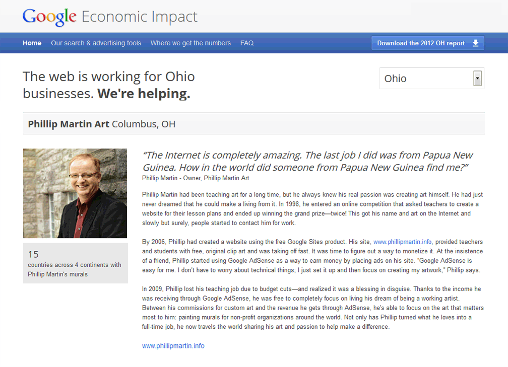 Yep, T H E Google heard about me. Yes, I make my living from the funds I earn from Google AdSense, but I never really expected Google to hear about me. I mean, seriously, who thinks like that? But, discover me they did, and they sent a film team to Ohio to make one of their first Google Success Stories videos. How cool is that? | ||